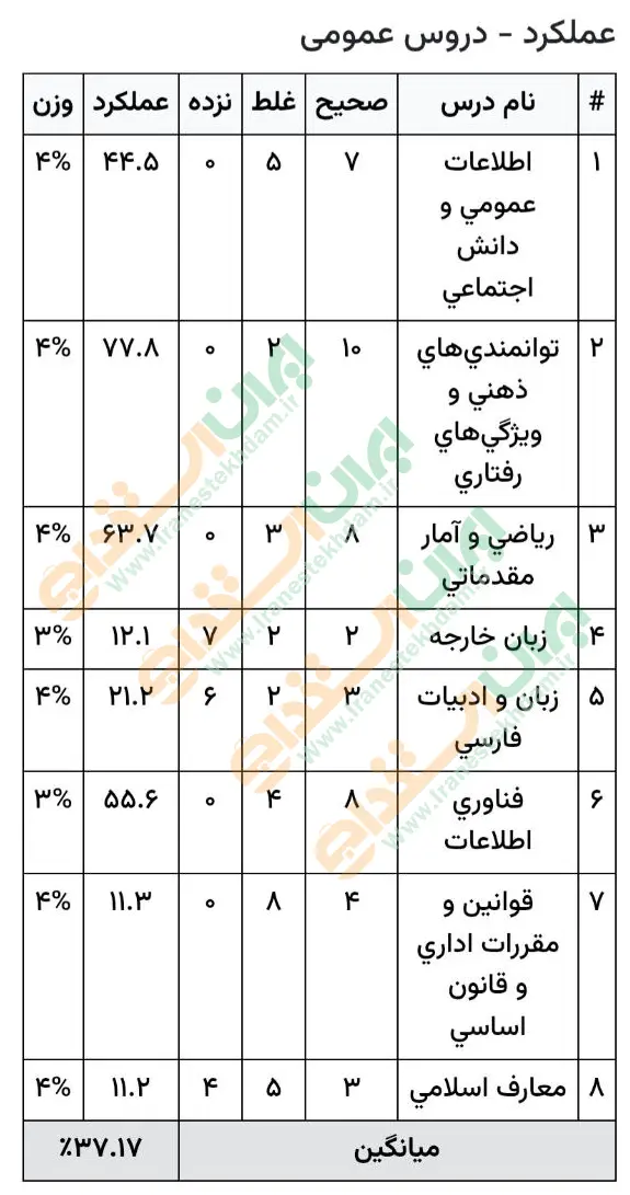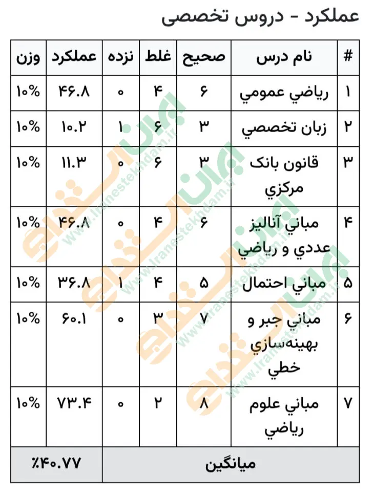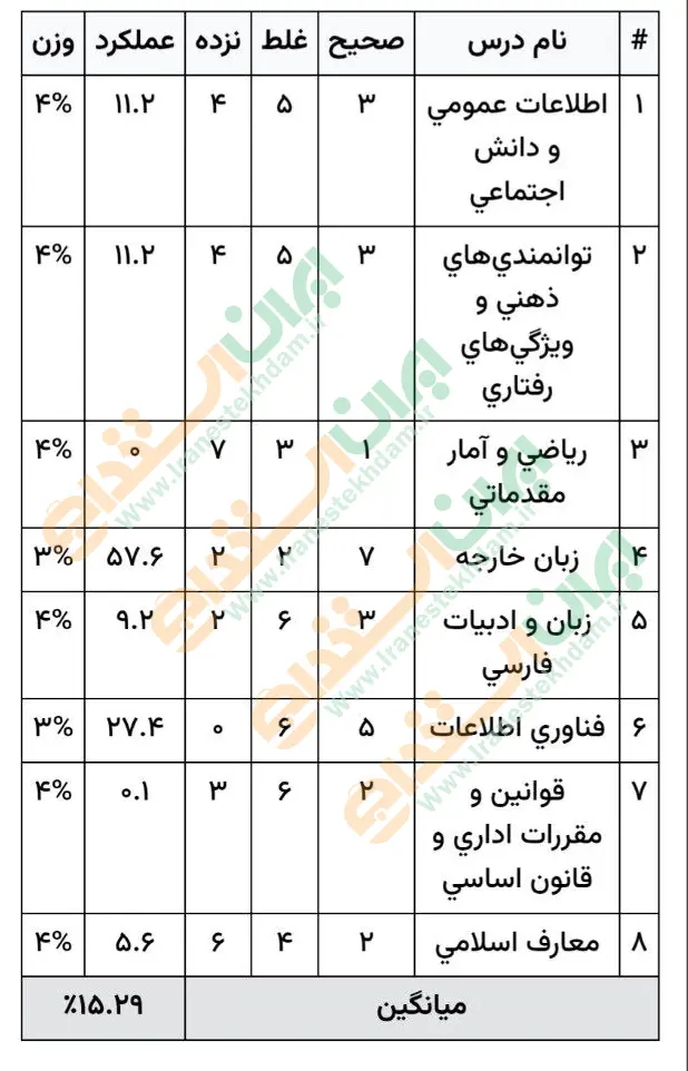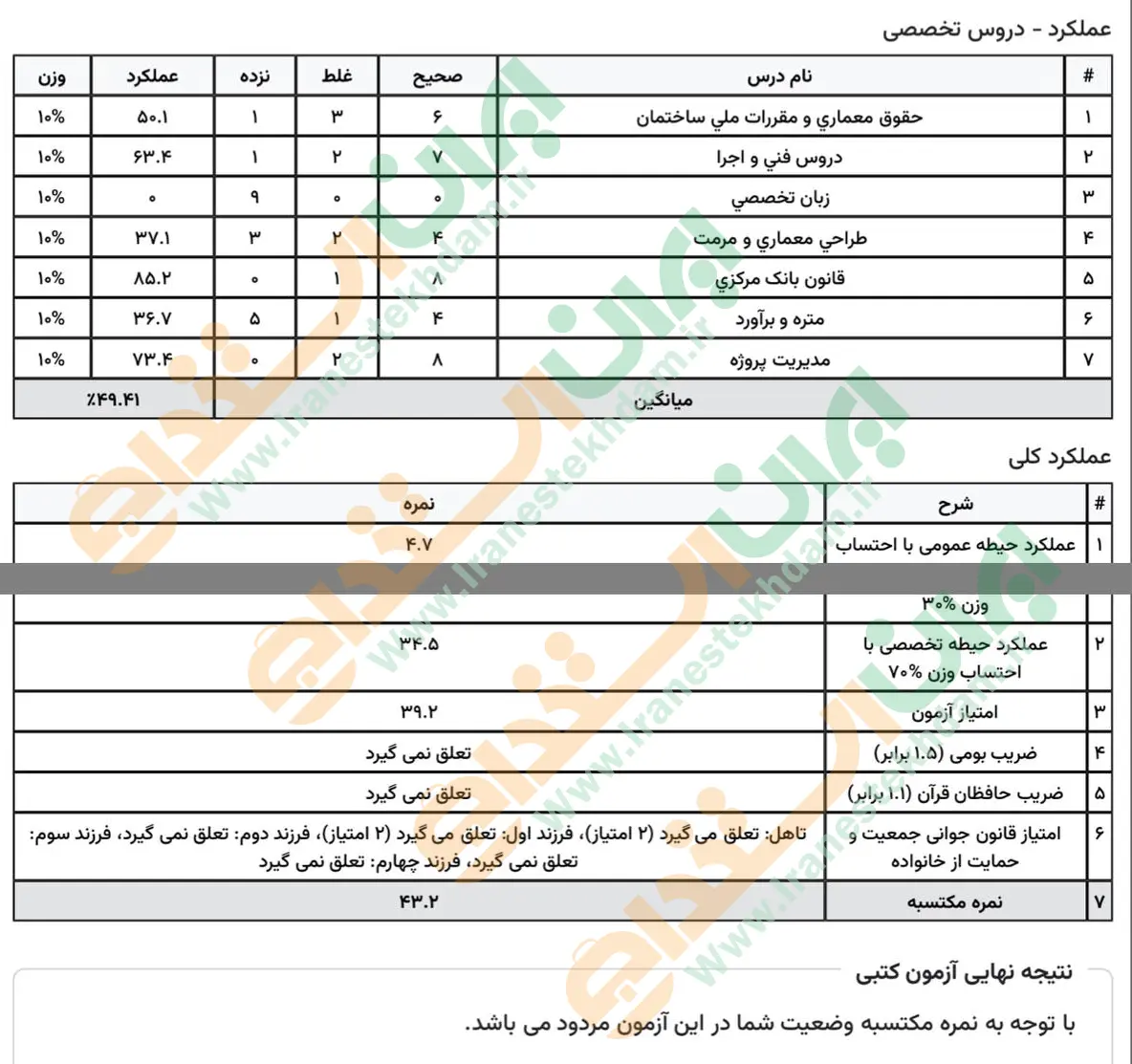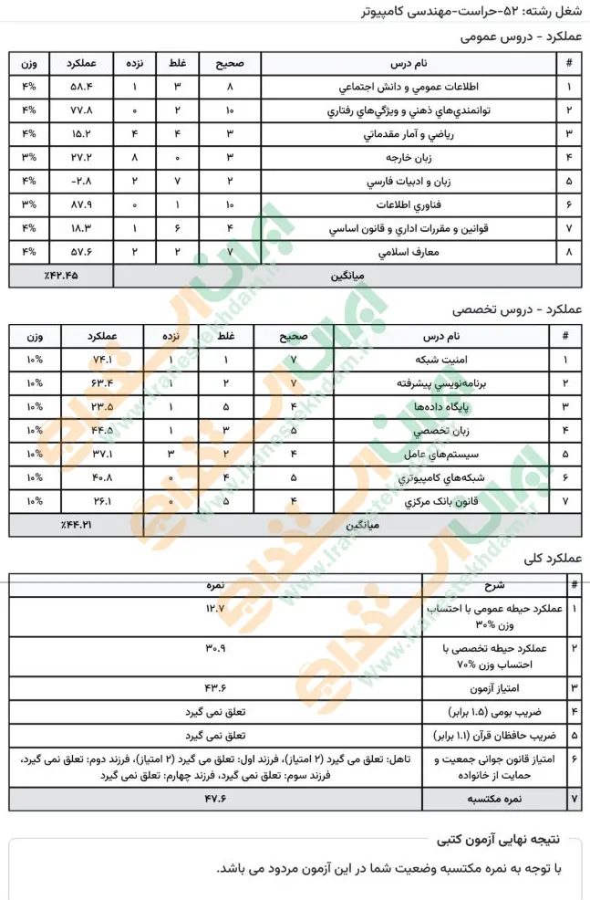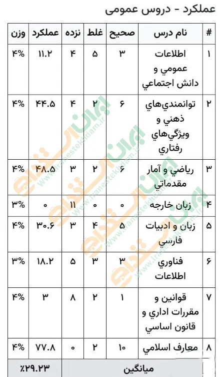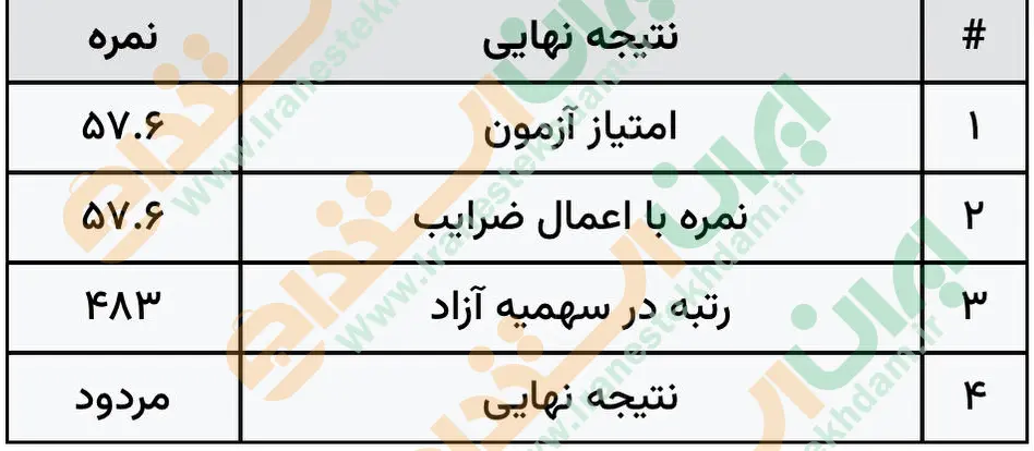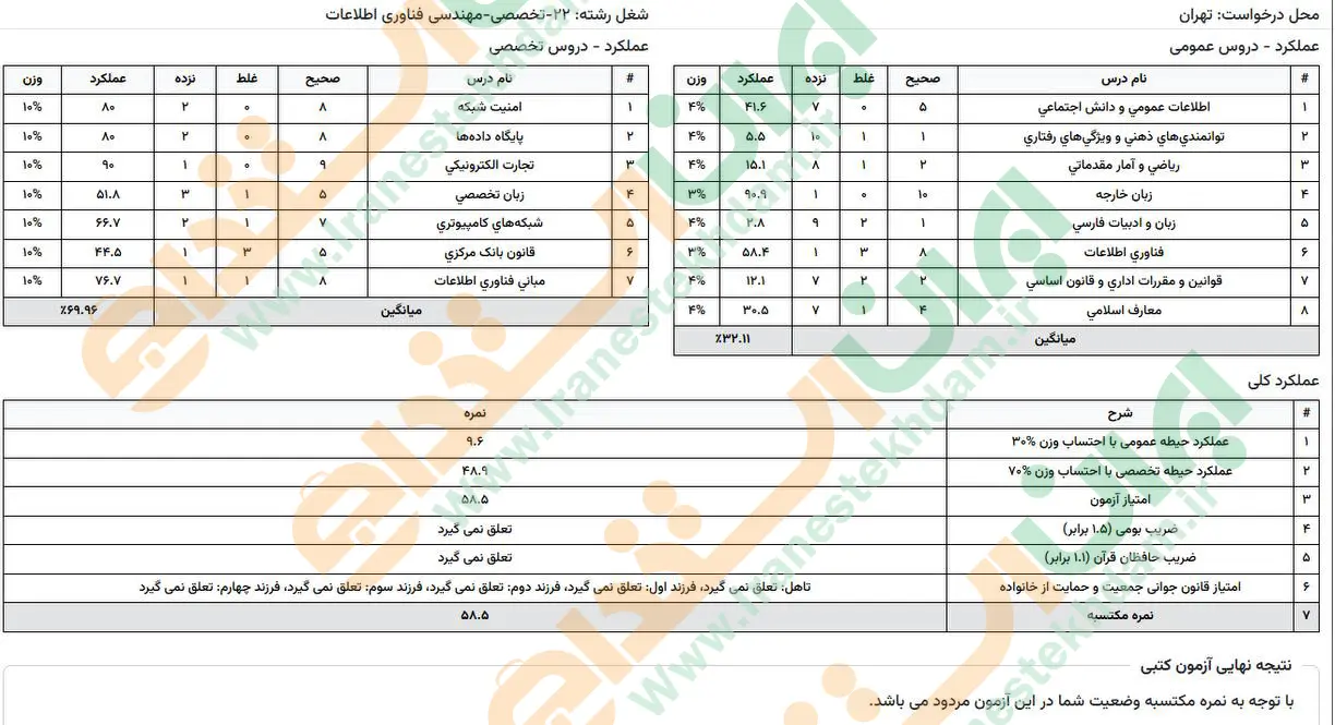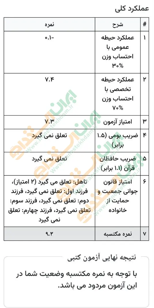 جهت مشاهده نمونه کارنامههای استخدامی بانک مرکزی بر روی تصویر کارنامه کلیک نمایید.
