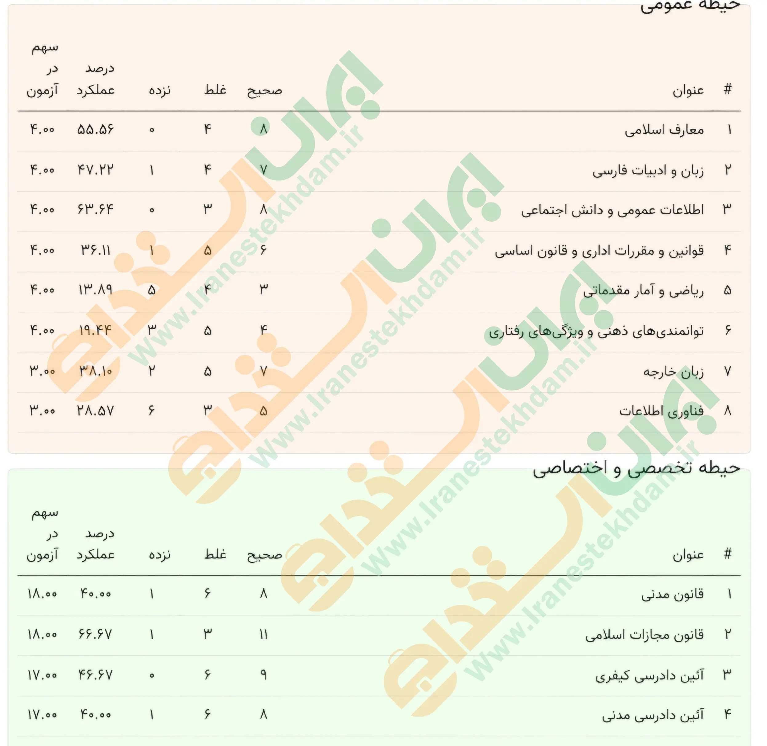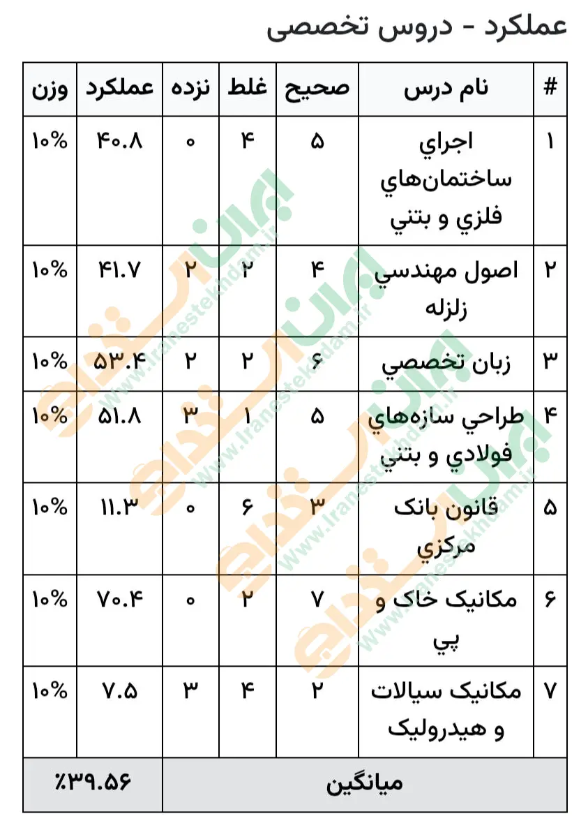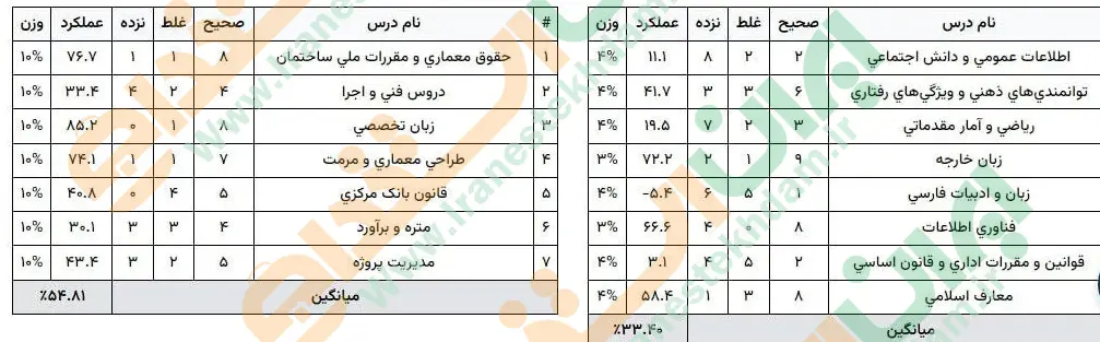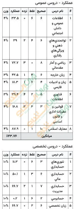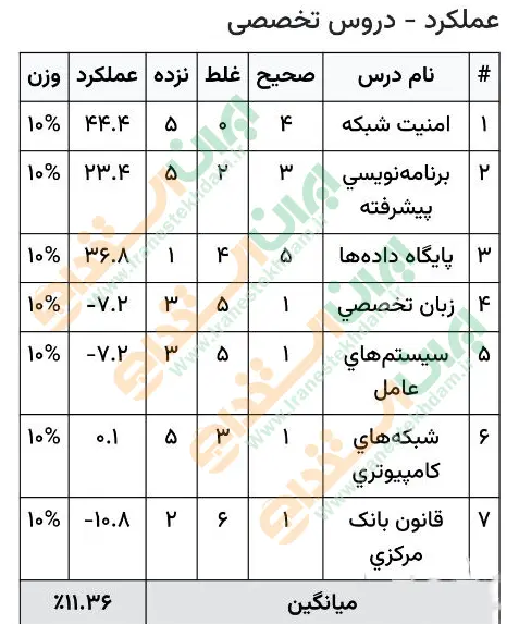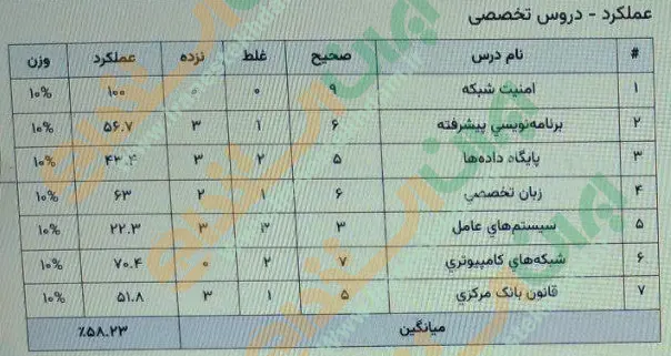 نمونه کارنامه های ارسال شده کاربران