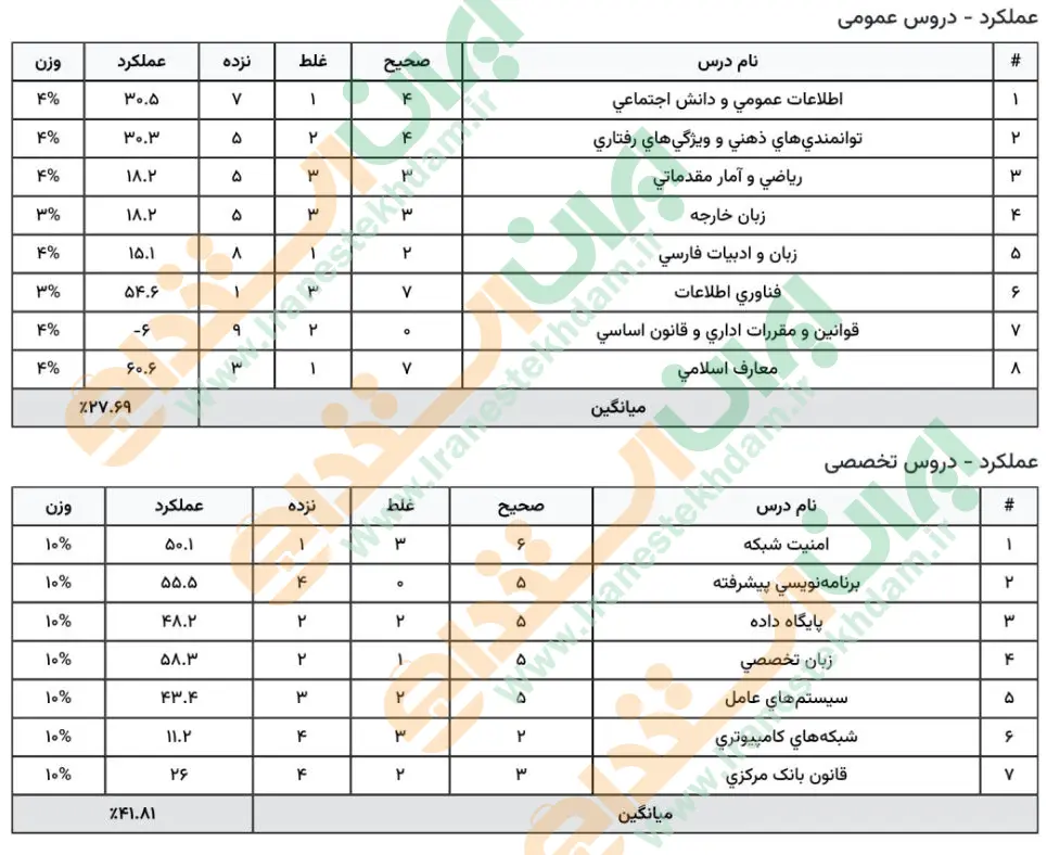 نمونه کارنامه های استخدامی بانک مرکزی سال ۱۴۰۴