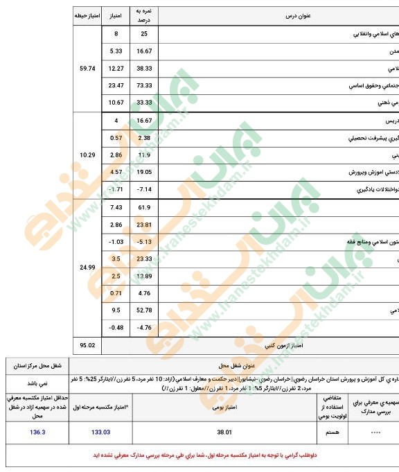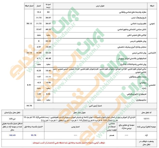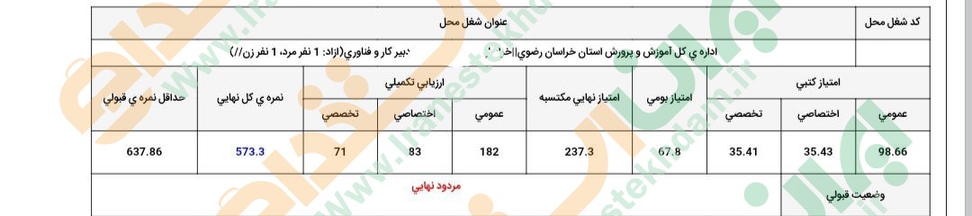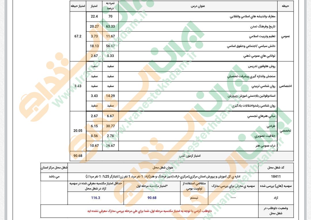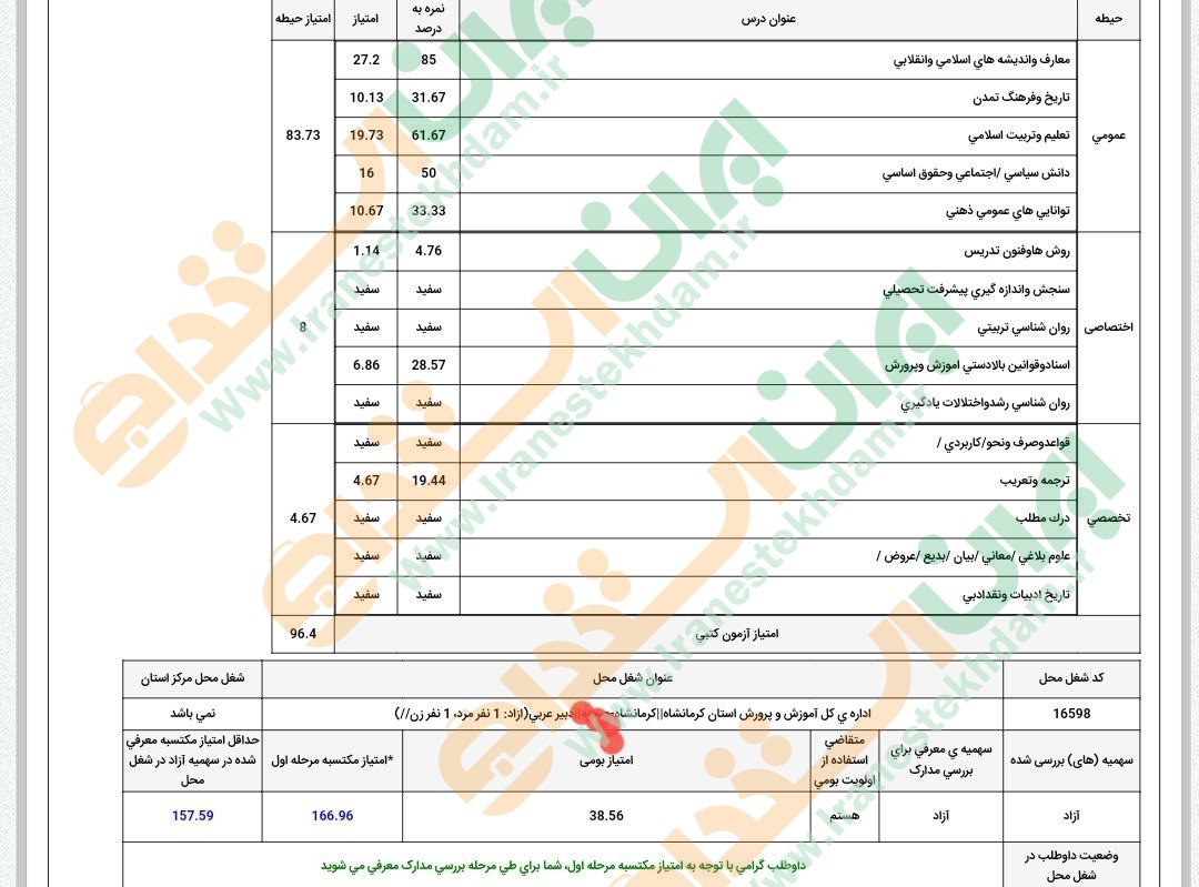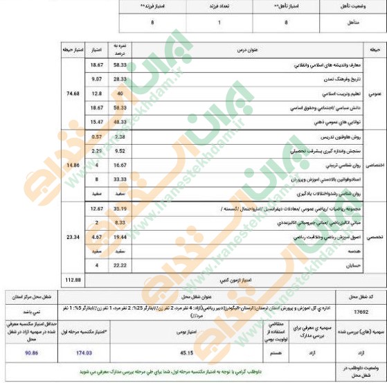| کارنامههای استخدامی دبیری و هنرآموز (کارنامه دوم) |