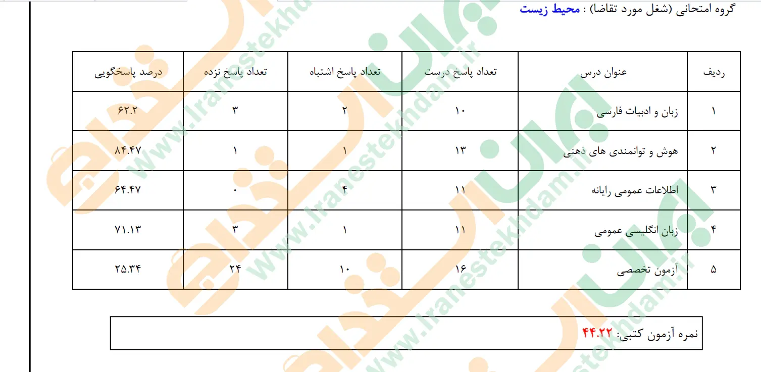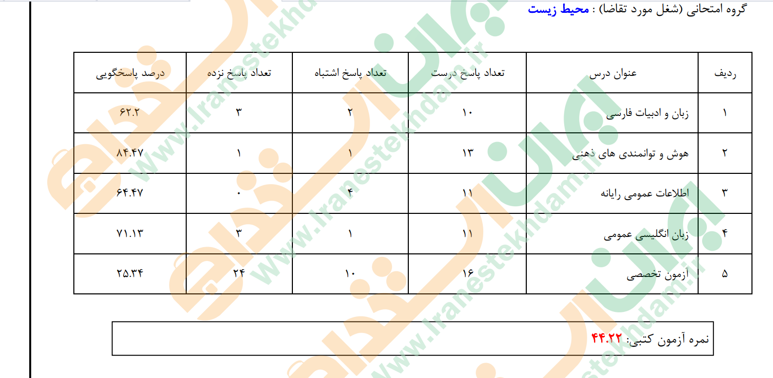 نمره آزمون کتبی : 44.3