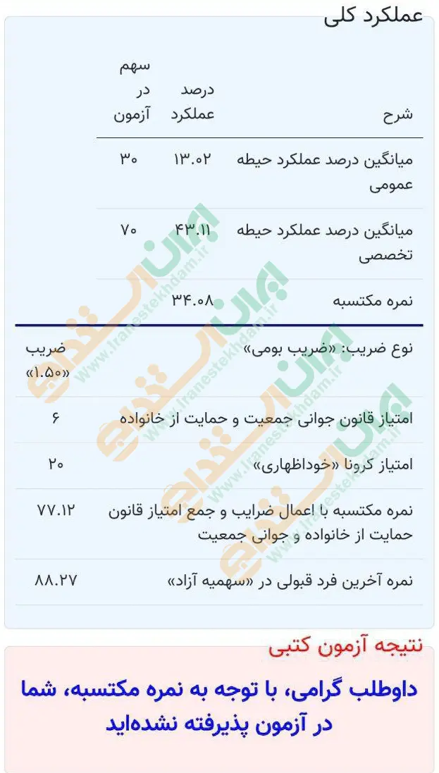 جهت مشاهده نمونه کارنامههای استخدامی وزارت بهداشت بر روی تصویر کارنامه کلیک نمایید.
