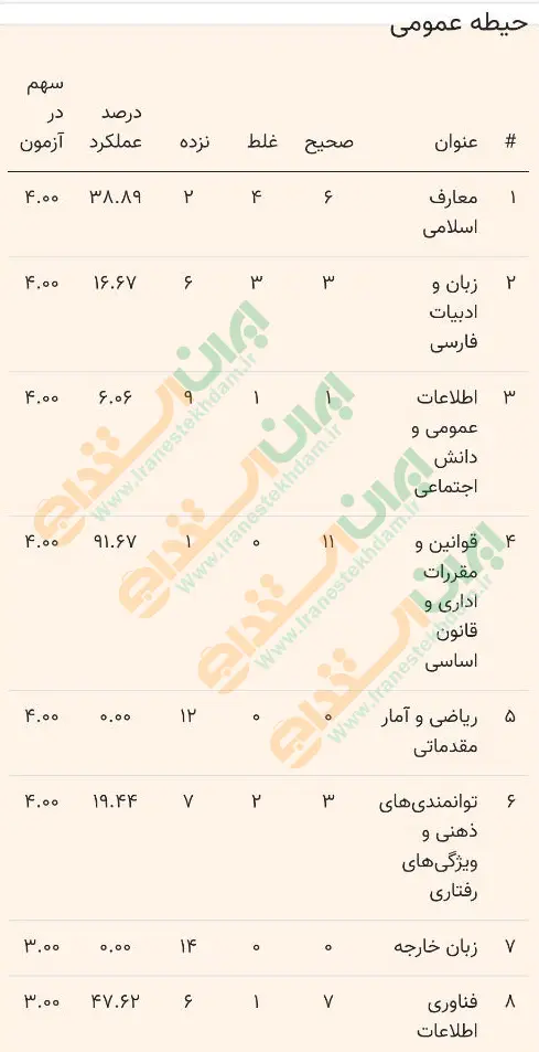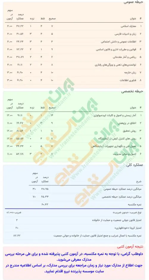 نمونه کارنامه های استخدامی وزارت بهداشت سال ۱۴۰۴