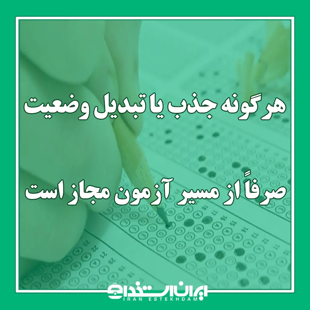 جذب یا تبدیل وضعیت صرفاً از مسیر آزمون استخدامی مجاز است