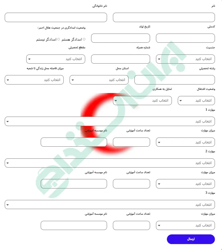 گام دوم: تکمیل فرم دعوت به همکاری هلال احمر