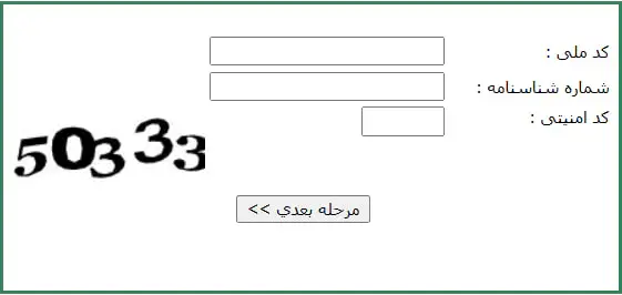 در این مرحله باید کد ملی، شماره شناسنامه و کد امنیتی را وارد کرده و سپس روی دکمه "بعدی" کلیک نمایید.