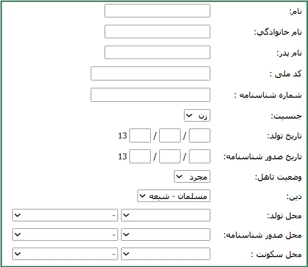 در این بخش باید اطلاعات هویتی خود شامل نام و نام خانوادگی، نام پدر، کدملی و.. را وارد نمایید.