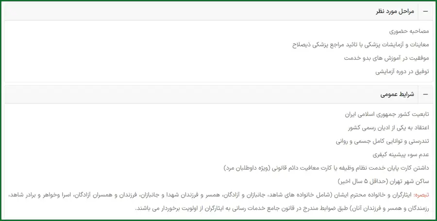 داشتن کارت پایان خدمت نظام وظیفه یا کارت معافیت دائم قانونی (ویژه داوطلبان مرد)