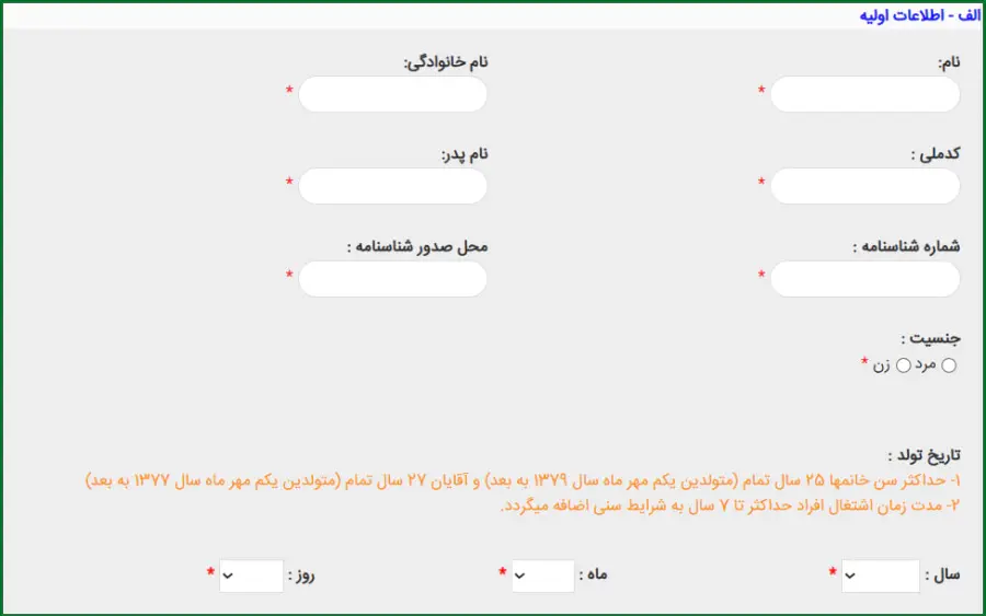 حداکثر سن خانم ها 25 سال تمام (متولدین یک مهر ماه 1379 به بعد) و آقایان 27 سال تمام (متولدین یک مهر ماه 1377 به بعد)