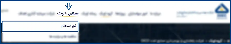 پس از ورود به صفحه اصلی شرکت اویکو، از منوی بالای سایت گزینه «همکاری با اویک» را انتخاب نمایید. سپس بر روی گزینه «فرم استخدام» کلیک کنید تا وارد صفحه مربوطه شوید.