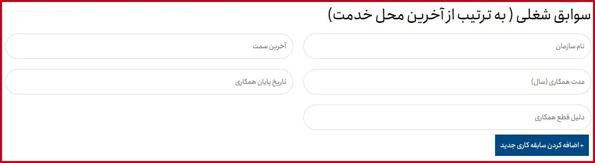 مرحله چهارم: تکمیل اطلاعات سوابق شغلی