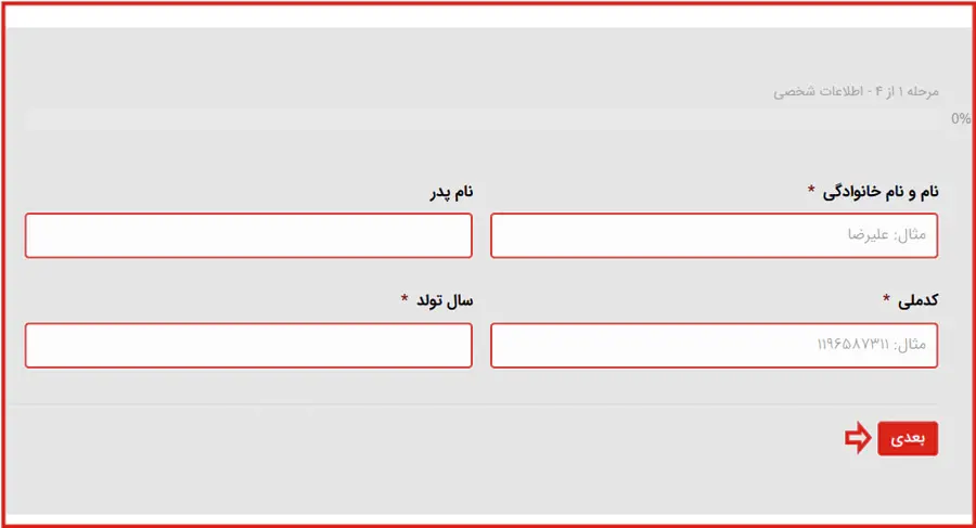 مرحله اول: ورود به صفحه تکمیل فرم و ثبت اطلاعات هویتی