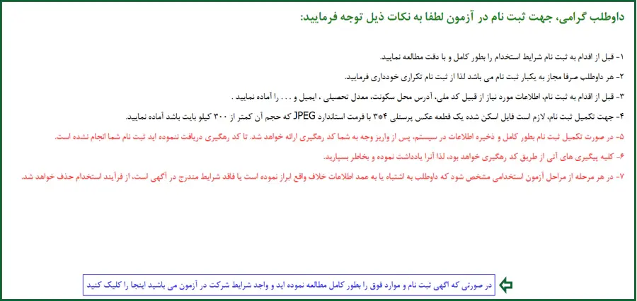 یادآور می شود آخرین نسخه معتبر دفترچه راهنمای آزمون، نسخه بارگذاری شده در این سایت می باشد. لطفا آن را دانلود و مطالعه نمایید.