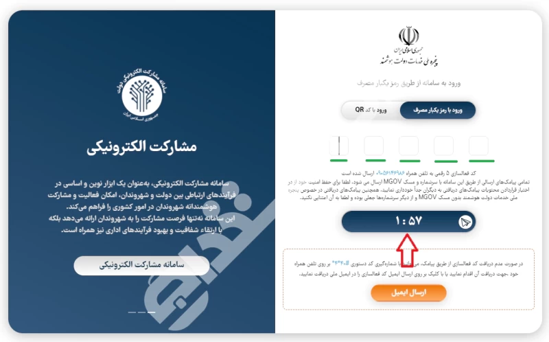کد ارسالی توسط پیامک را وارد نمایید و سپس منتظر باشید تا پنجره ملی خدمات دولت هوشمندنمایش داده شود.