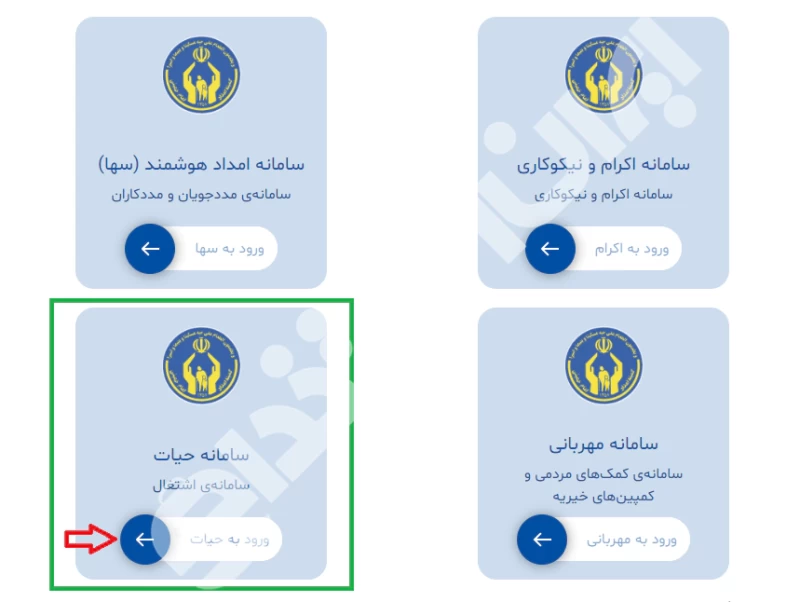 اولین قدم برای ورود به سامانه هوشمند امداد (سامانه حیات)، ثبت نام مددجویان به منظور ثبت درخواستهای متنوع میباشد. برای اینکار ابتدا از طریق دکمه "سامانه حیات" قرار داده شده در بالا، وارد سامانه شوید.