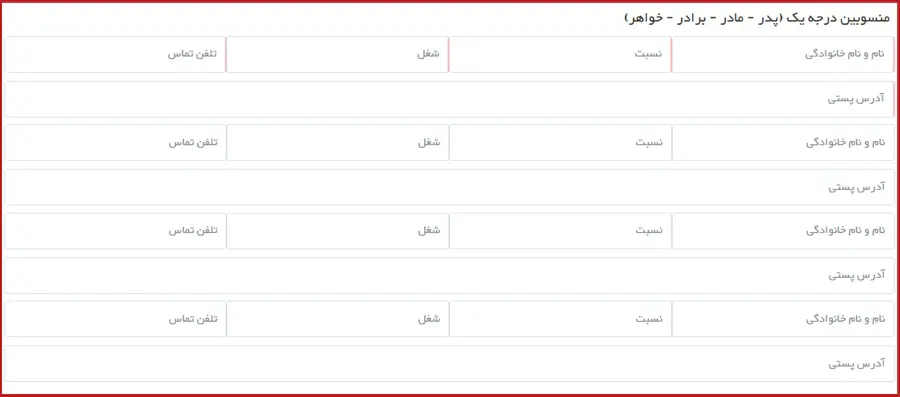در این بخش، اطلاعات بستگان درجه یک شامل نام و نام خانوادگی، نسبت، شغل و.. را وارد نمایید.