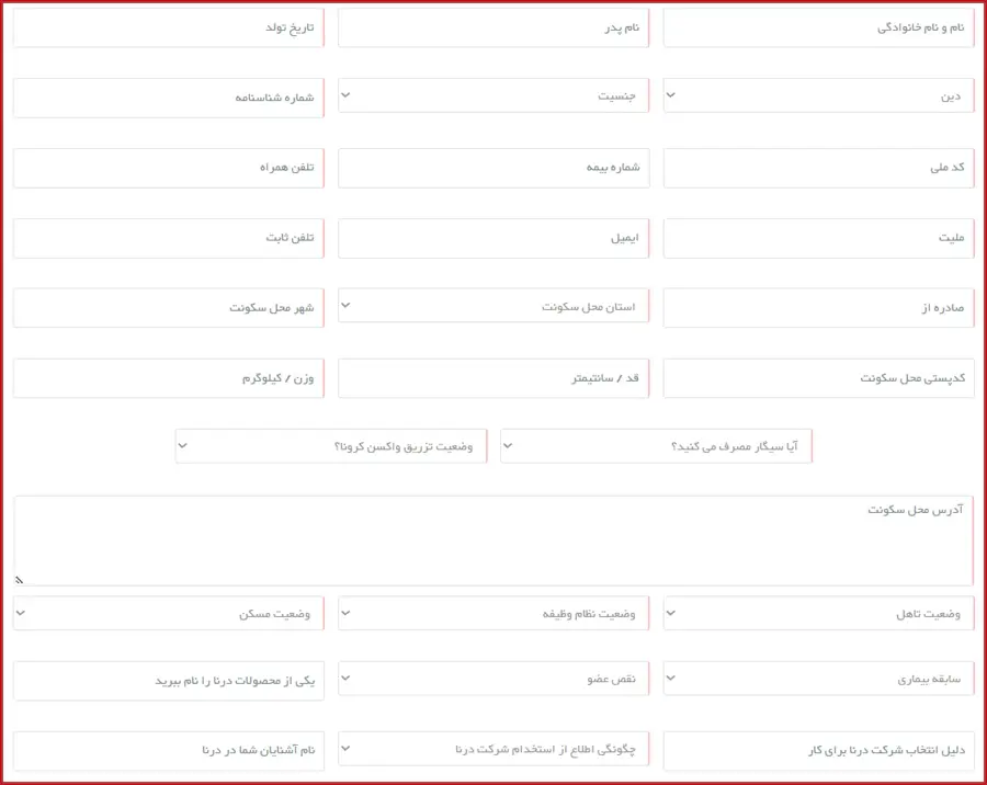 راهنمای گام به گام تکمیل فرم استخدام شرکت درنا