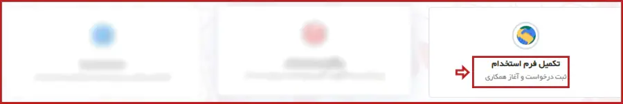 پس از کلیک روی گزینه استخدام، صفحهای مشابه تصویر زیر نمایش داده میشود و لازم است از میان گزینههای موجود، روی گزینه "تکمیل فرم استخدام" کلیک نمایید.