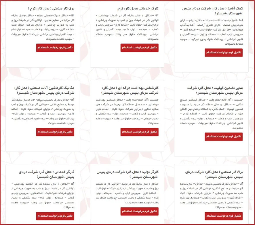 در این مرحله، فهرستی از موقعیتهای شغلی فعال این شرکت برای شما نمایش داده میشود که پس از بررسی شرایط احراز و اطمینان از تطابق آنها با توانمندیهای خود، میتوانید روی فرصت شغلی موردنظر کلیک نمایید.