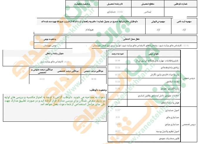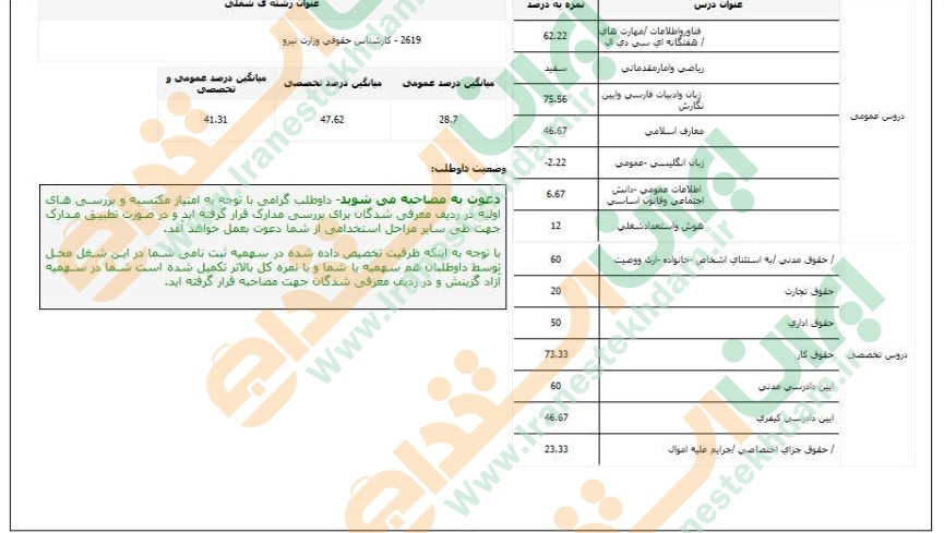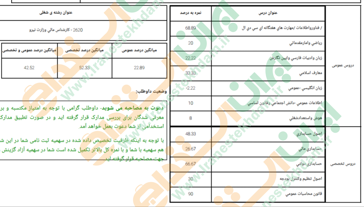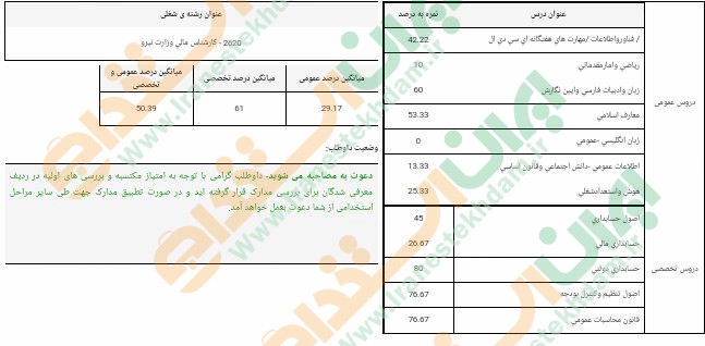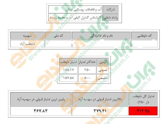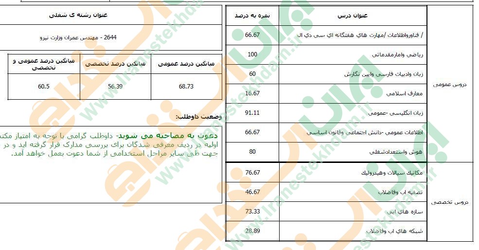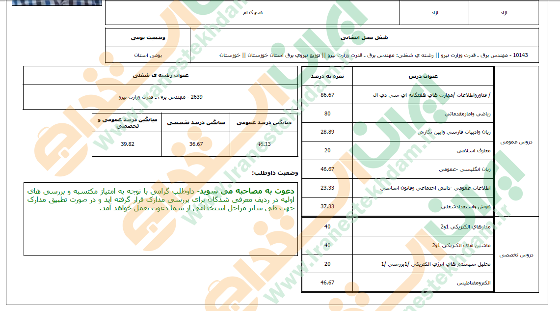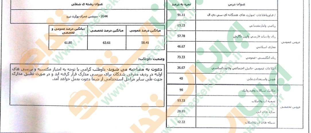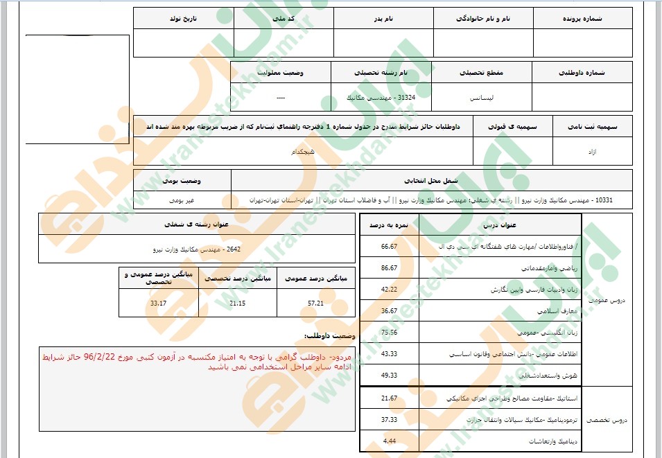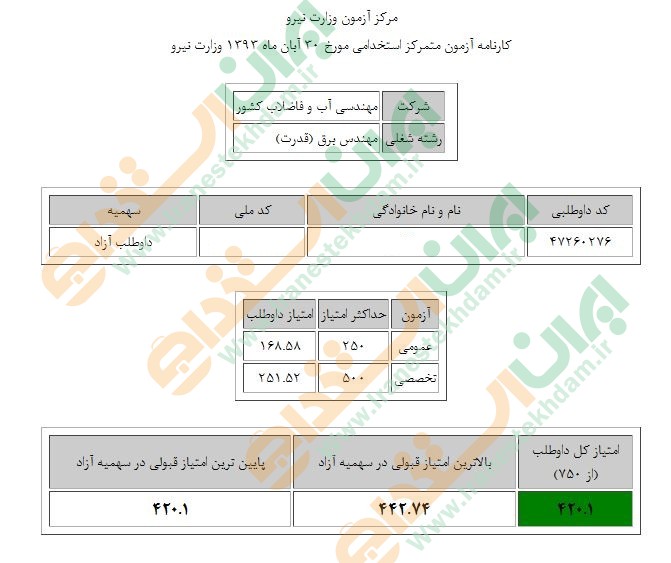 جهت مشاهده نمونه کارنامههای استخدامی وزارت نیرو بر روی تصویر کارنامه کلیک نمایید.