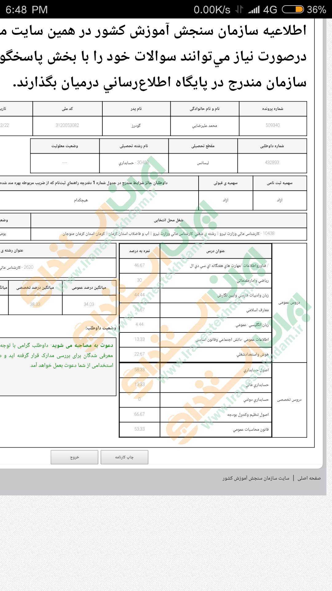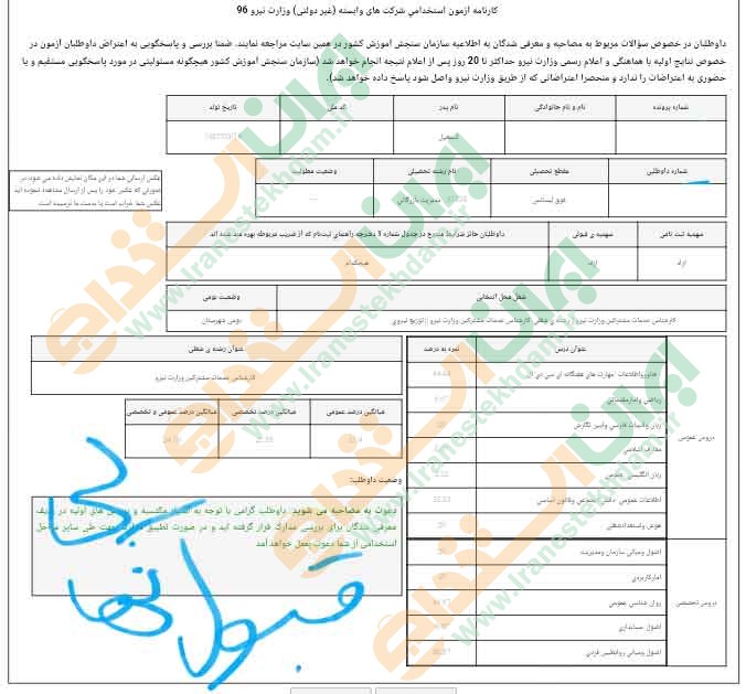 نمونه کارنامه های آزمون استخدامی وزارت نیرو سال ۹۶