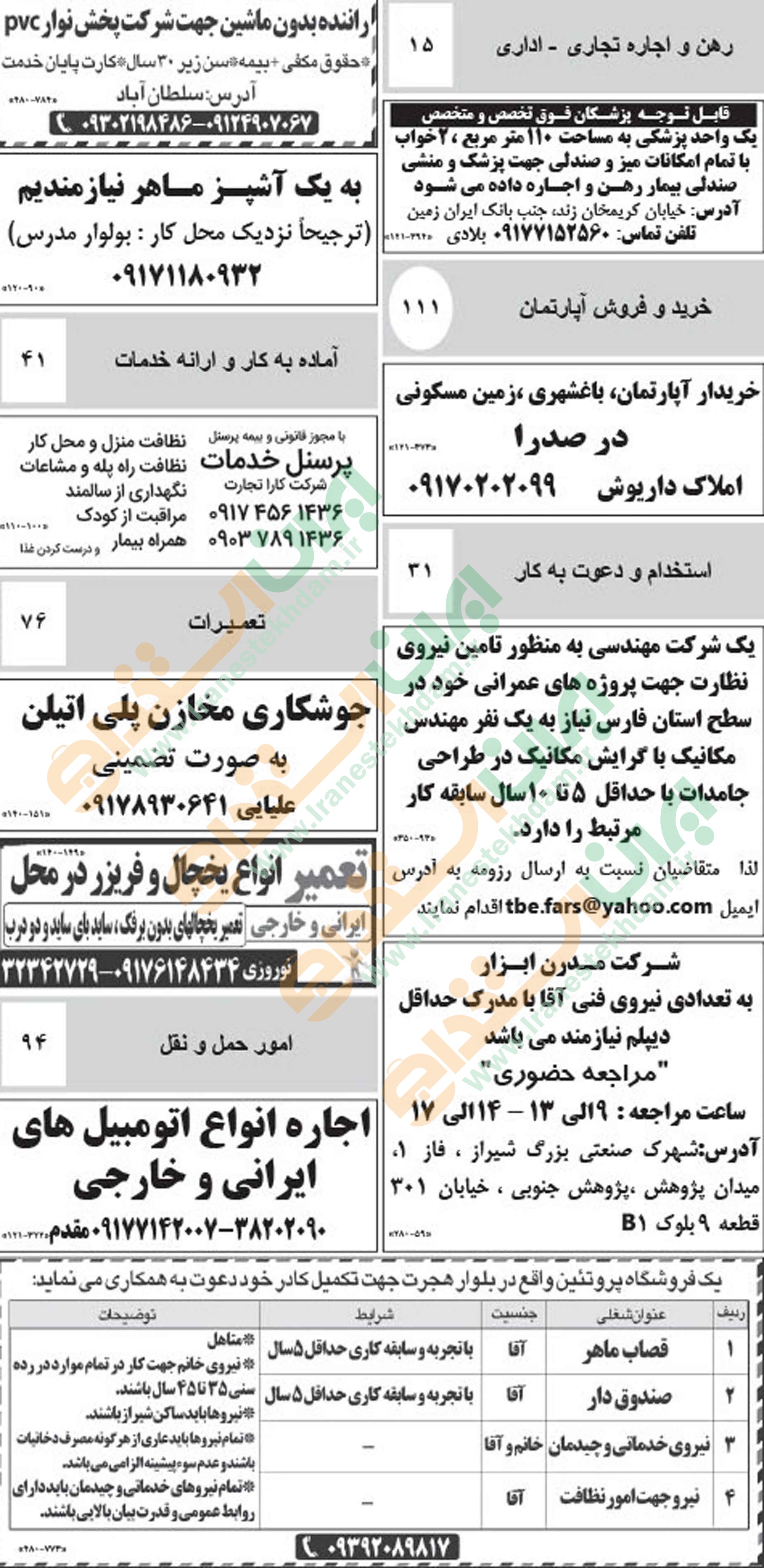 روزنامه استخدامی فارس و شهر شیراز | سه شنبه ۱۱ مرداد ۱۴۰۱