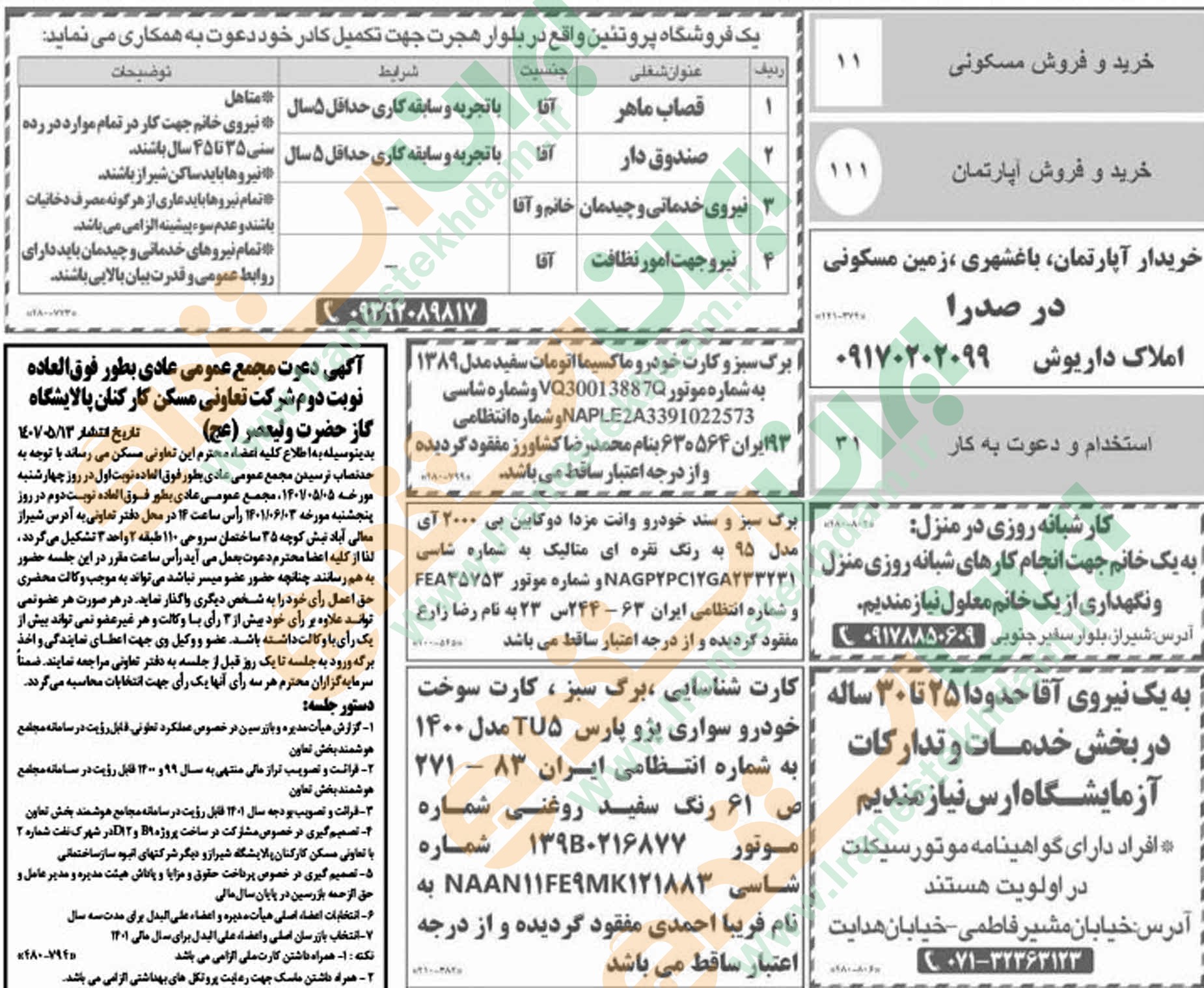 روزنامه استخدامی فارس و شهر شیراز | پنجشنبه 13 مرداد 1401