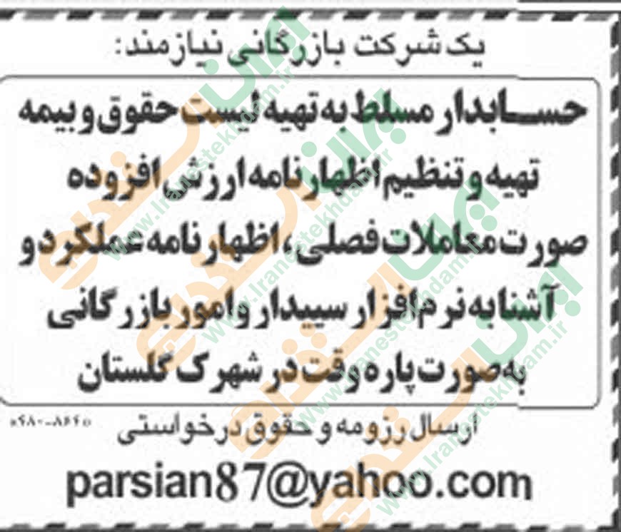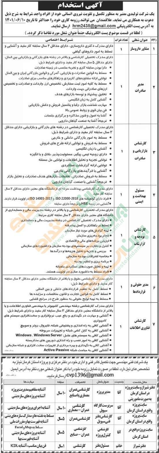 ♦ در صورتی که به دنبال موقعیت های شغلی روز فارس هستید، میتوانید از طریق سایت ایران استخدام از یکی از روش های دریافت آگهی های استخدامی “از طریق ایمیل و پیامک – از طریق اپلیکیشن اختصاصی ایران استخدام – از طریق کانال تلگرام ایران استخدام” اقدام نمایید.