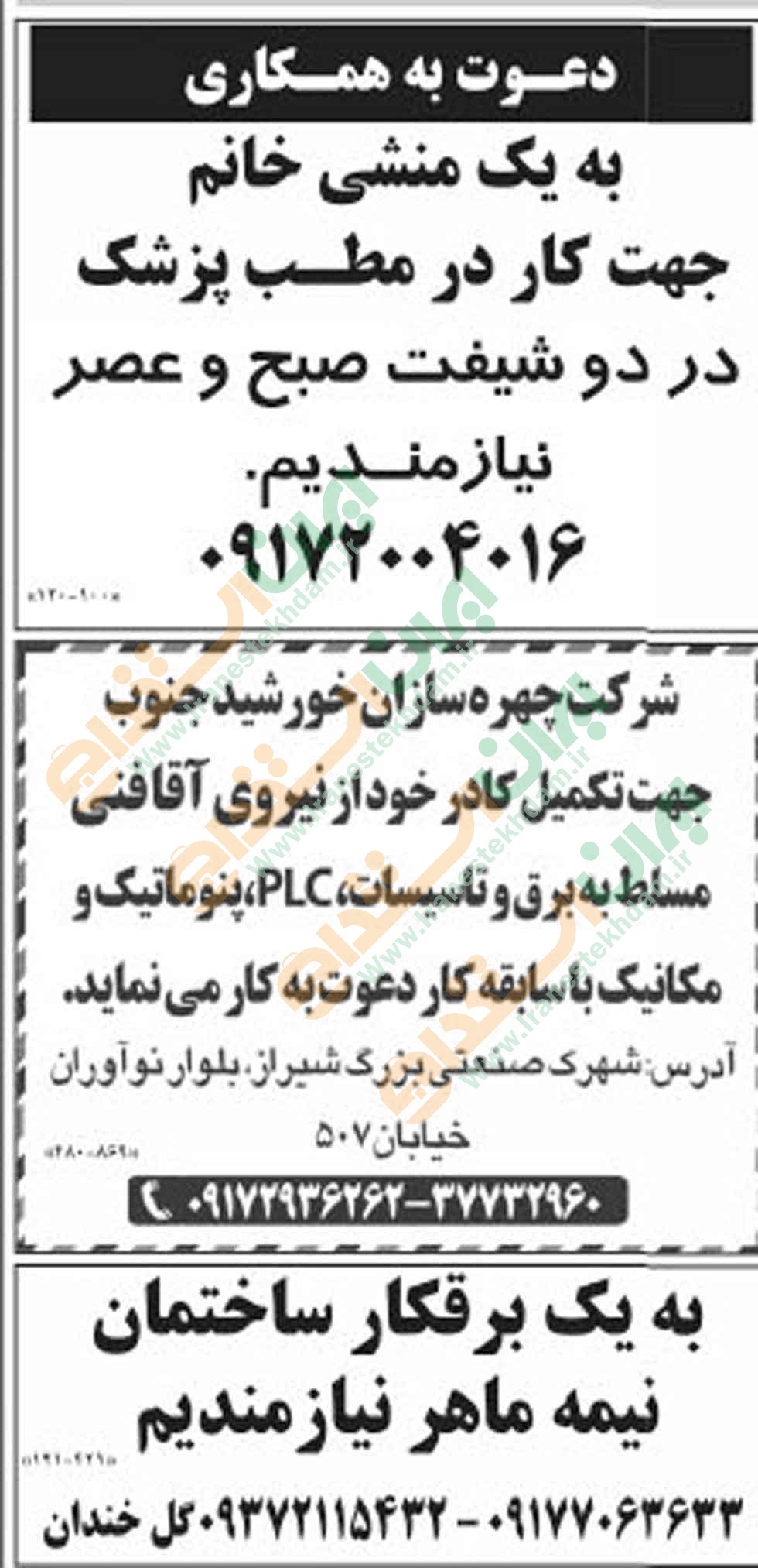 روزنامه استخدامی فارس و شهر شیراز | سه شنبه ۲۵ مرداد ۱۴۰۱