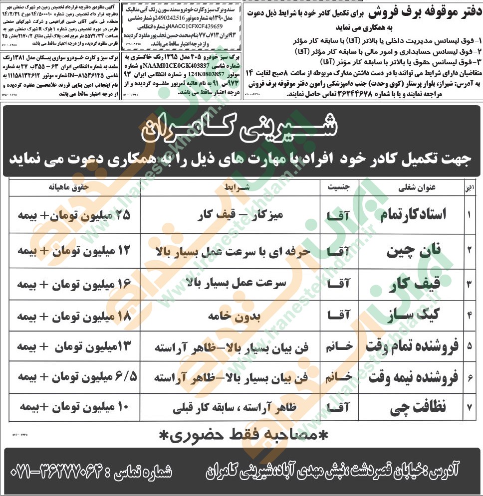 همچنین برای مشاهده صفحه نیازمندی های استخدامی استان فارس اینجا کلیک نمایید