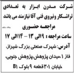 روزنامه استخدامی فارس و شهر شیراز | یکشنبه 6 شهریور 1401