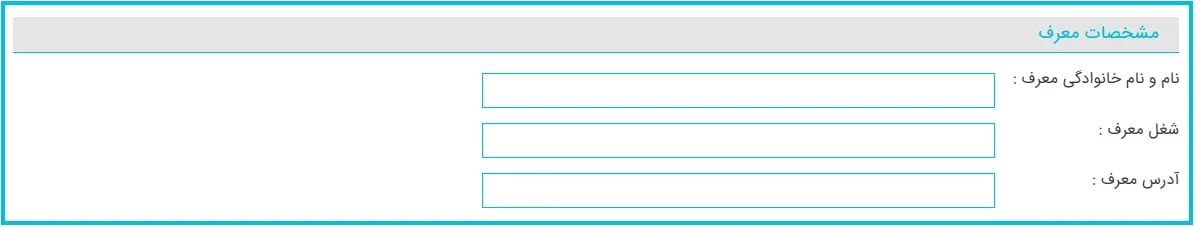 این مرحله مربوط به اطلاعات معرف است که باید نام و نام خانوادگی معرف، شغل و نشانی محل سکونت او را وارد نمایید.