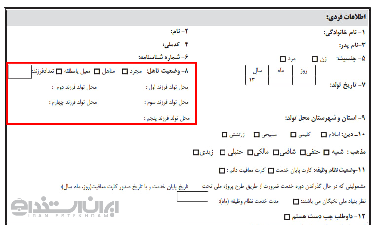 یکی از شروط استفاده از امتیاز تاهل و فرزند که توضیحات لازم در مورد آنها در متن بصورت کامل داده شد در صورتی لحاظ خواهند شد:
