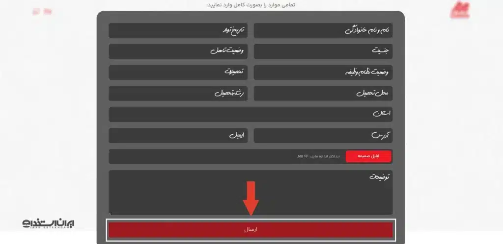 با کلیک بر روی بخش “همکاری با زمزم” به صفحهای هدایت خواهید شد که در آن باید اطلاعات شخصی مانند نام، تاریخ تولد، جنسیت، وضعیت تأهل و سایر جزئیات مورد نیاز را وارد کنید. سپس، رزومه خود را پیوست کرده و با کلیک بر روی گزینه ارسال، درخواست شما ثبت و ارسال خواهد شد.