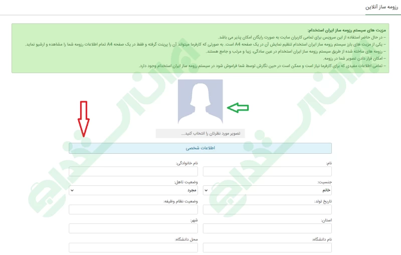 - امکان اضافه کردن عکس پرسنلی به رزومه